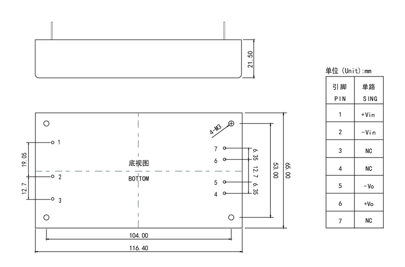 | 输出电压Output voltage (VDC) | 输出电流Output current(A) | 纹波 Pipple and noise(mv) | 效率 Efficiency (Typ) |