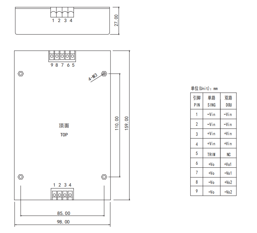 外型尺寸与引脚定义 MECHANICAL DRAWING AND PIN DEFINITION